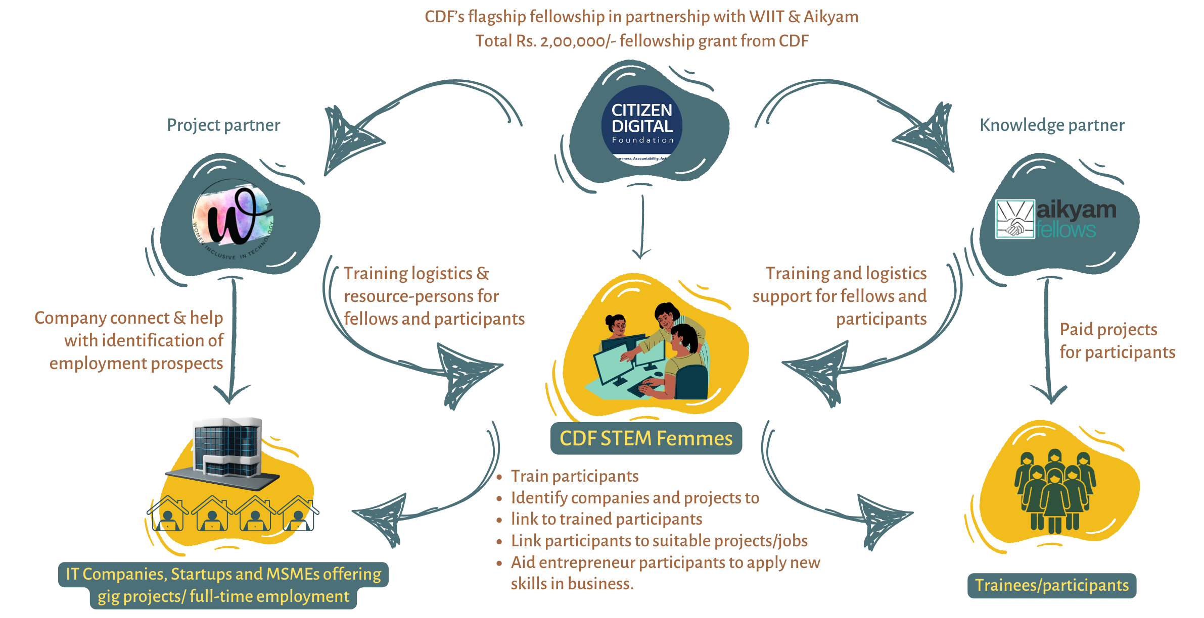 CDF STEM Femme Fellowship is organised by Citizen Digital Foundation, a non profit organisation based in Trivandrum, Kerala. CDF strives to make digital technologies safer, responsible and inclusive in India. We foster information literacy among end users of technology, and advocate responsible and inclusive innovation and development of technologies among businesses, start-ups and tinkerers.